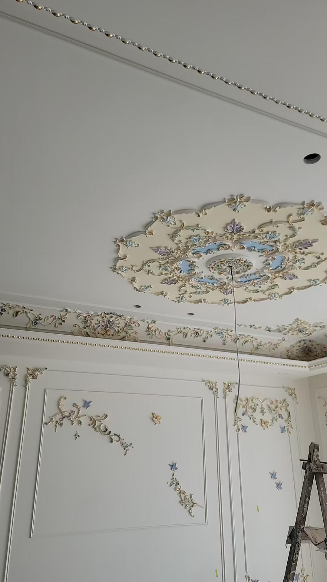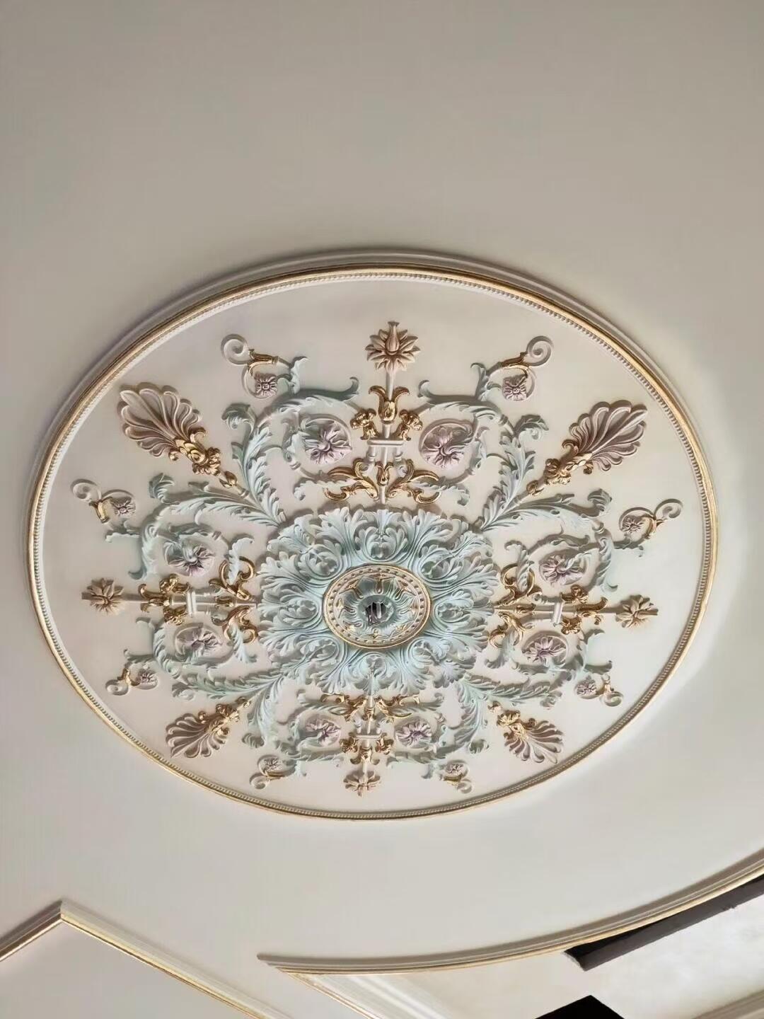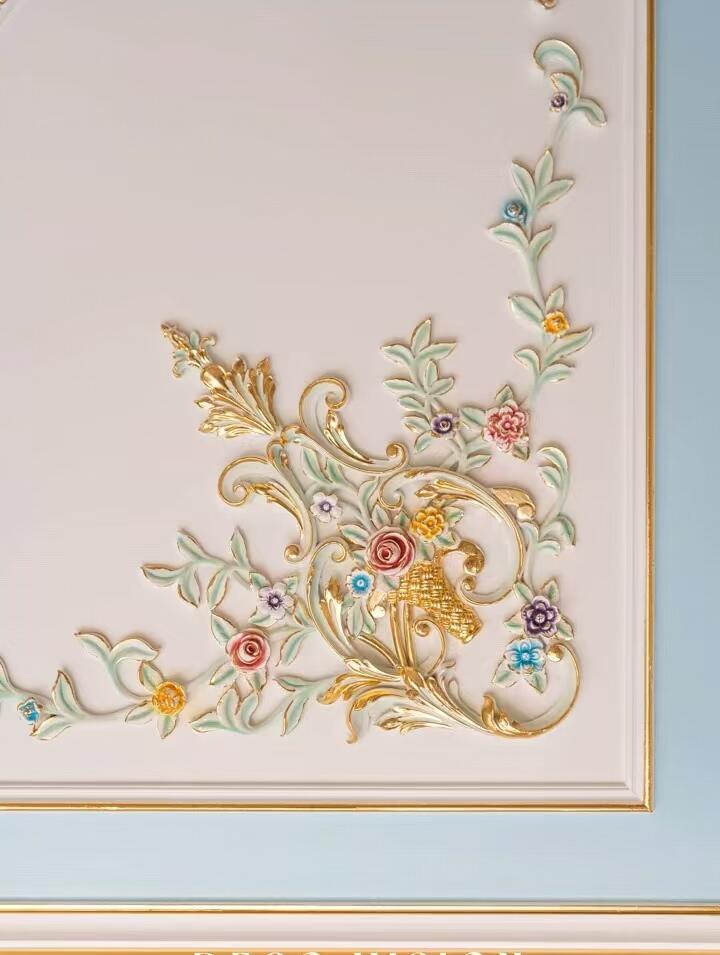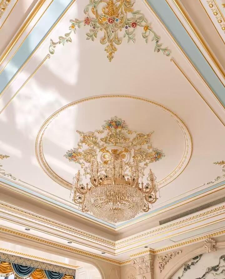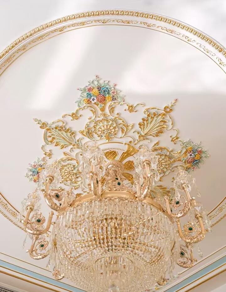 Rococo-Style Ceiling Design with Hand-Painted Artwork and Gold Leaf
